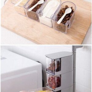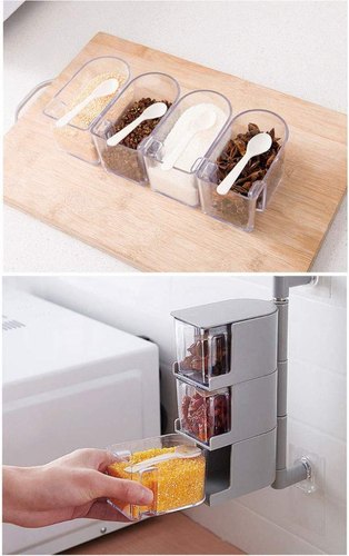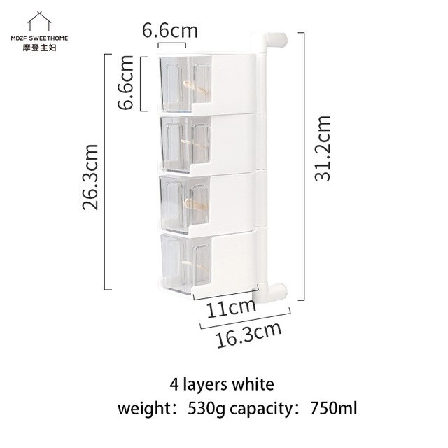 4 Layer Rotating Wall Sticky Masala Shelf Boxes Holder Wall-Mounted Plastic Transparent Seasoning Box for Spice Set