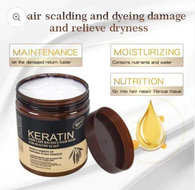 The keratin in the hair mask helps to repair damaged hair by smoothing out the hair cuticles and preventing further breakage.